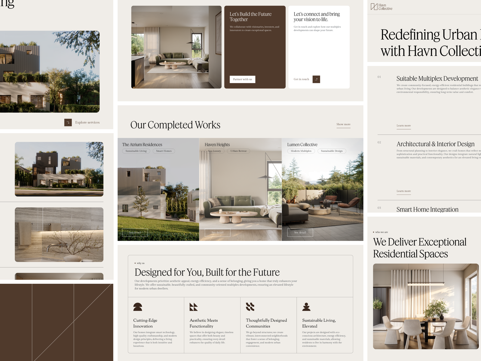 I’ll try to explain the design approach. The UI was put together to feel clear, classy, and reliable, using a nice mix of fonts, colors, and layouts. Soft beige shades, plenty of breathing room, and smooth serif fonts give it a calm, upscale feel that fits a high-end residential vibe. Everything, from the navigation to the call-to-action buttons, was made consistent and easy to follow, guiding users smoothly through the site.