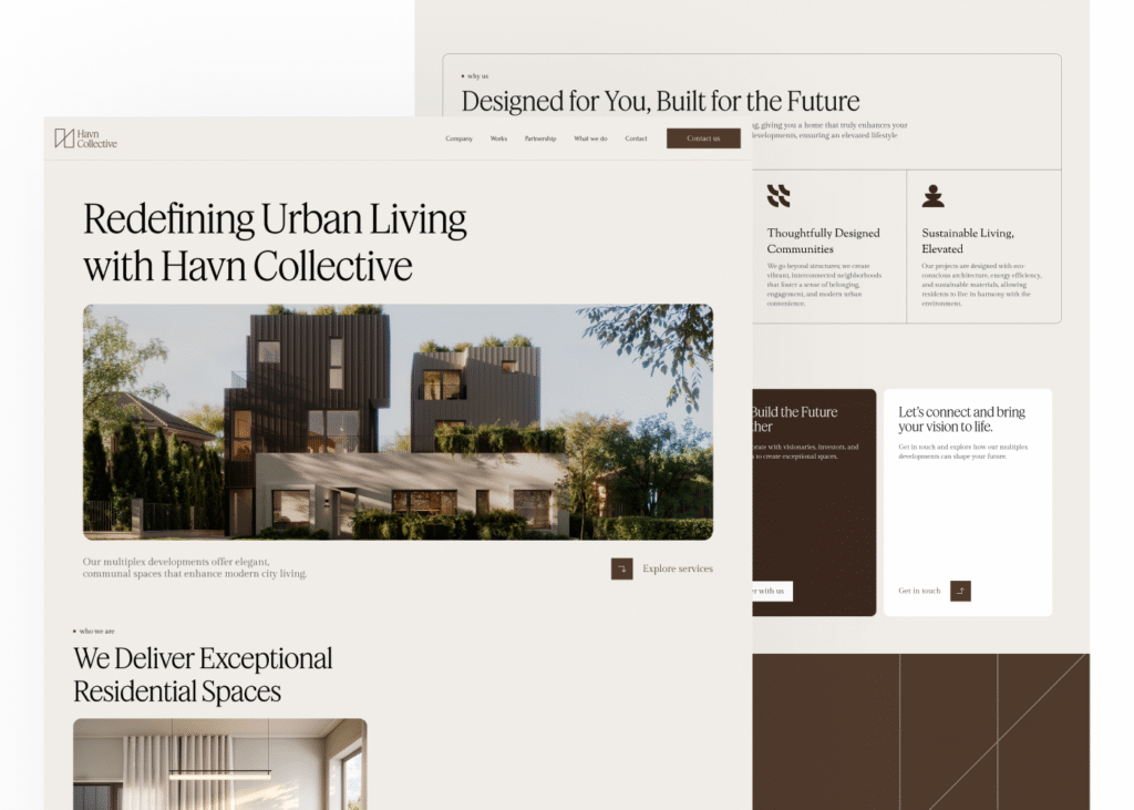 This website was built to show off the cool mix of elegance, fresh ideas, and eco-friendliness that makes this modern residential development brand stand out. The aim? To create a digital vibe that matches the brand’s sleek architectural style, think tidy layouts, warm neutral colors, and top-notch visuals that feel welcoming, trustworthy, and pro. With a chill yet eye-catching look, the site pulls people in to check out the brand’s values and services in a laid-back, fun way.